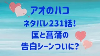 週刊少年ジャンプで2026年2月23日(月)に掲載予定の、アオのハコ231話ネタバレ最新話をお届けします。 前話230話では、匡と菖蒲の告白シーンが来ると思っていたら、まさかの千夏と大喜のラブラブデートの続きでした。 見開きいっぱいの濃密な...